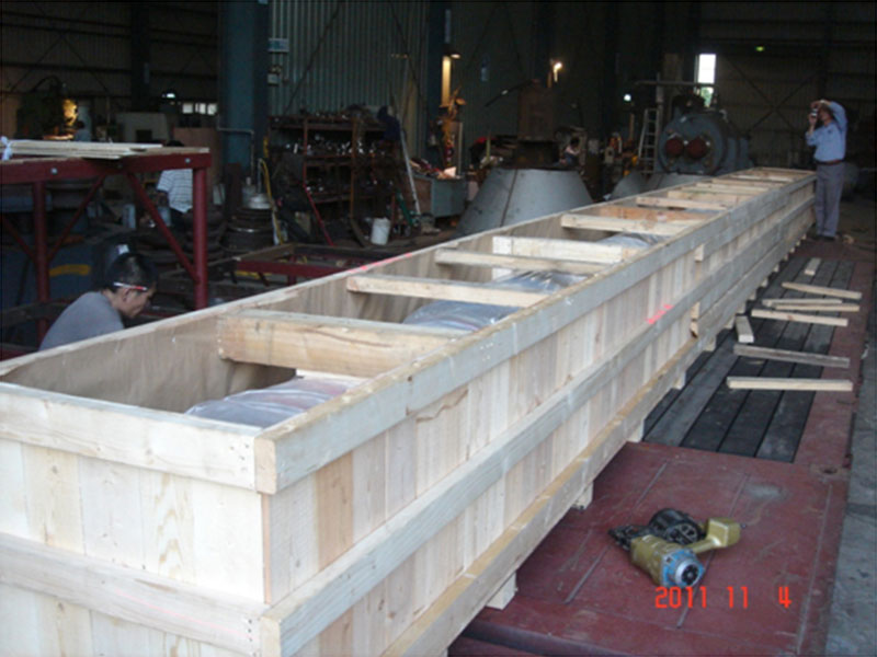 將軸心以木箱包裝並固定,確保軸心安全不受損壞。